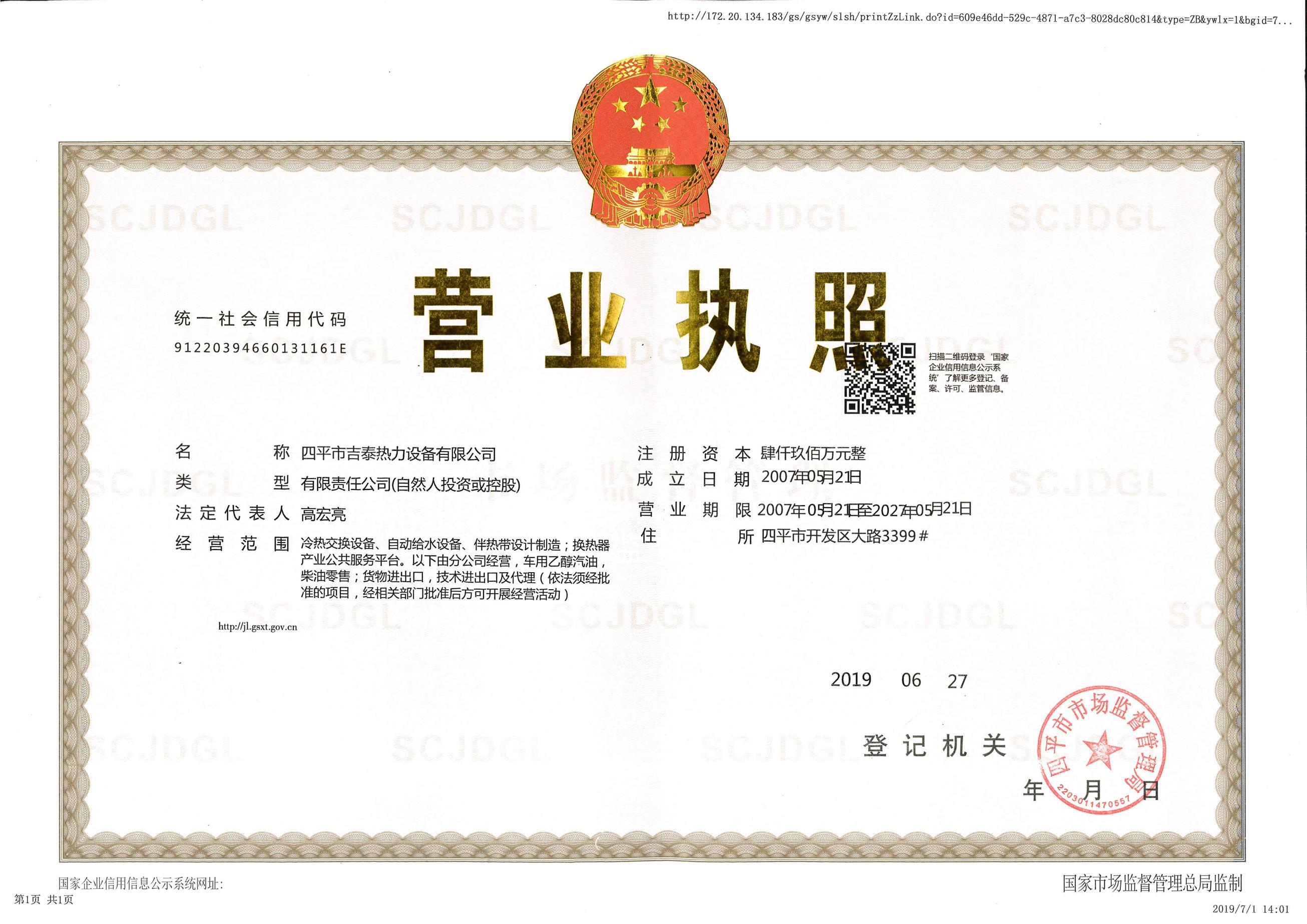 SIPING JITAI HEAT EXCHANGE EQUIPMENT CO.,LTD. 四平市吉泰熱力設(shè)備有限公司